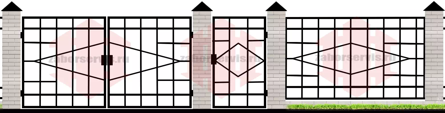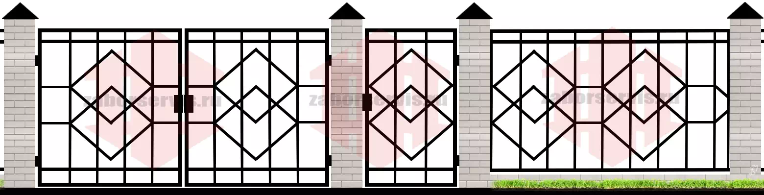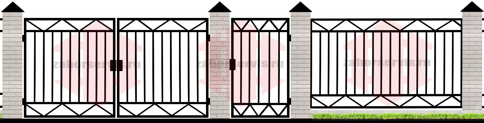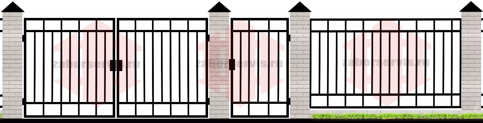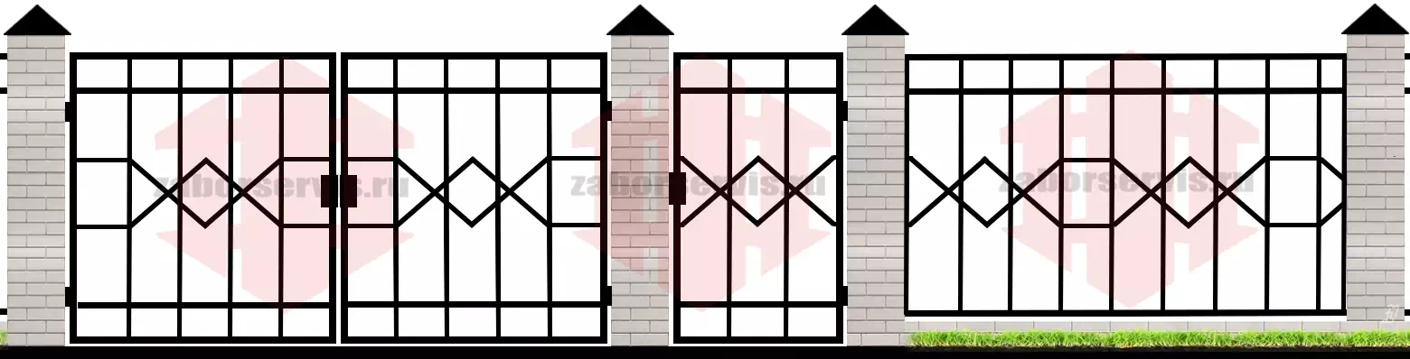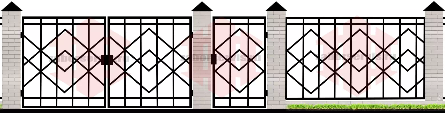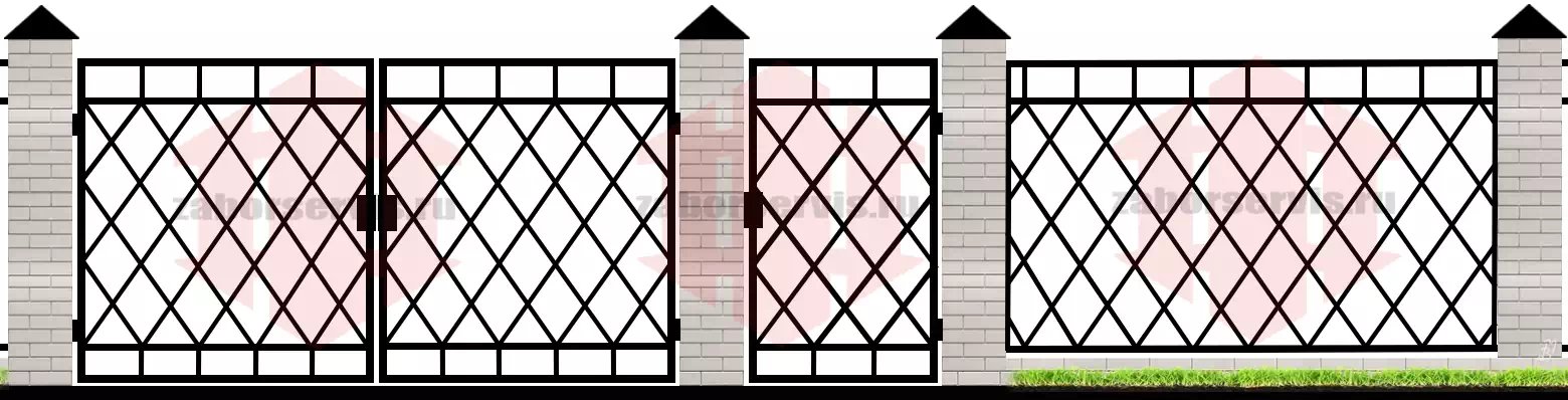 Забор из 3Д GL панелей ячейка 200х55 (на оцинкованных столбах с покраской 65x55x1.4)