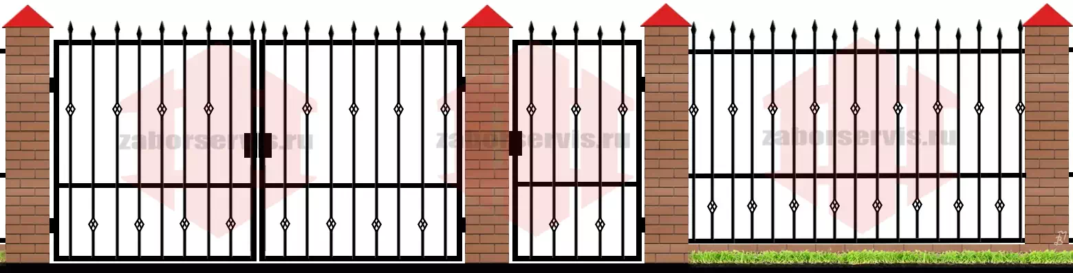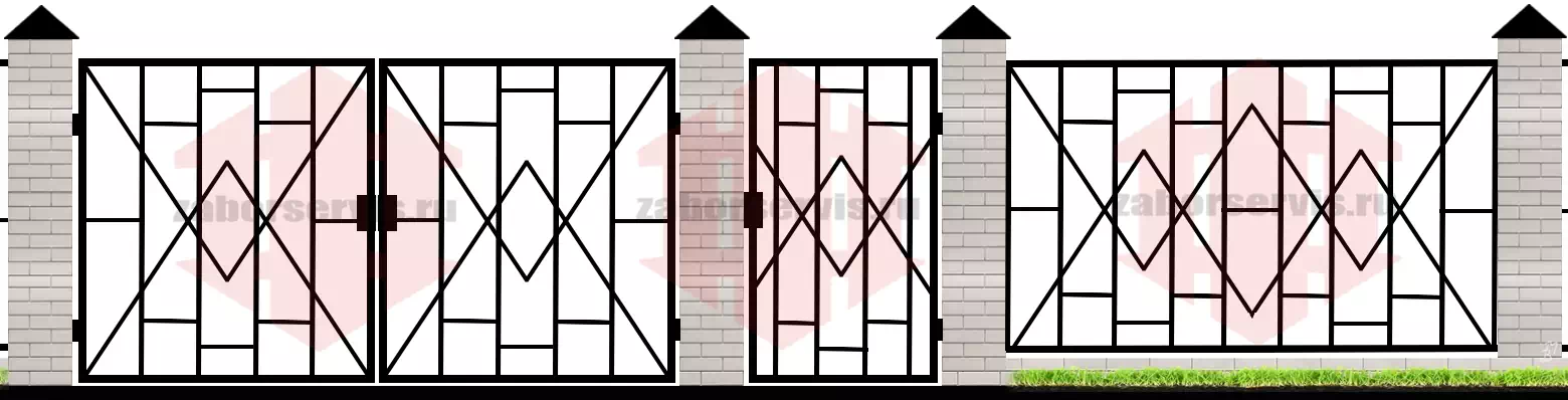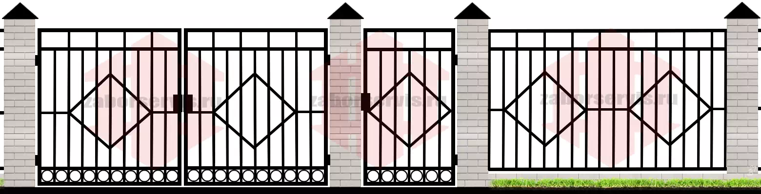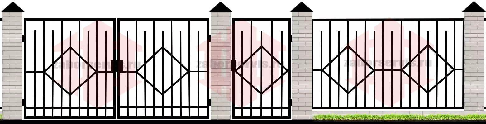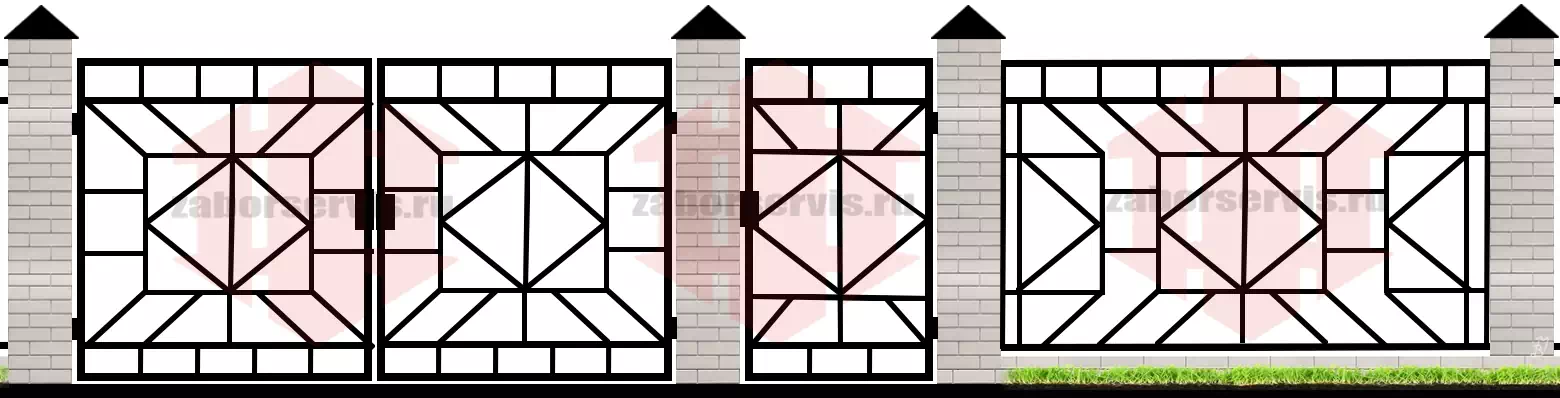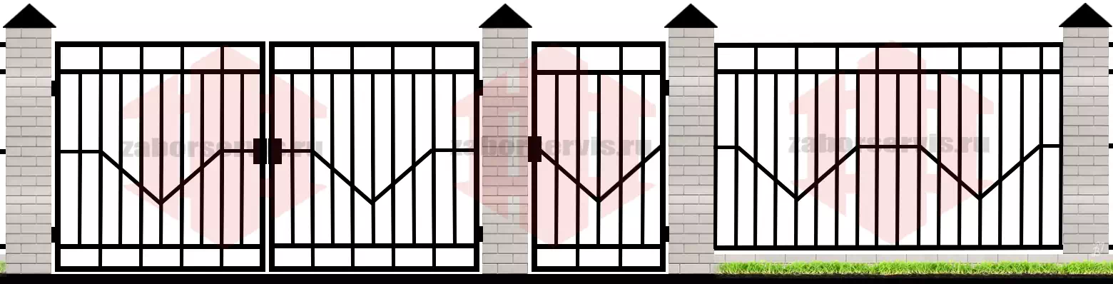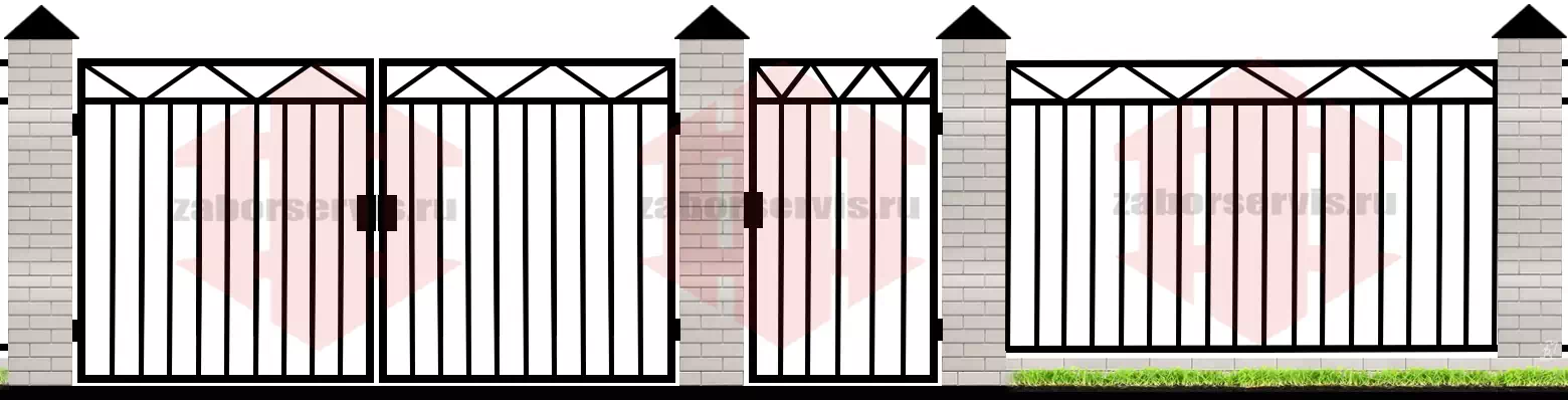 Забор из 3Д GL панелей ячейка 200х55 (на оцинкованных столбах с покраской 65x55x1.4)